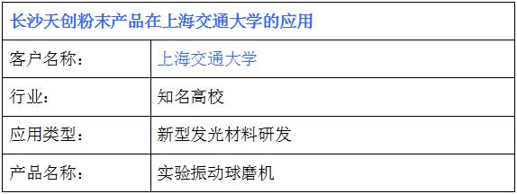 上海交通大學在天創粉末采購一臺實驗振動球磨機,用于新型發光材料球磨實驗研發。