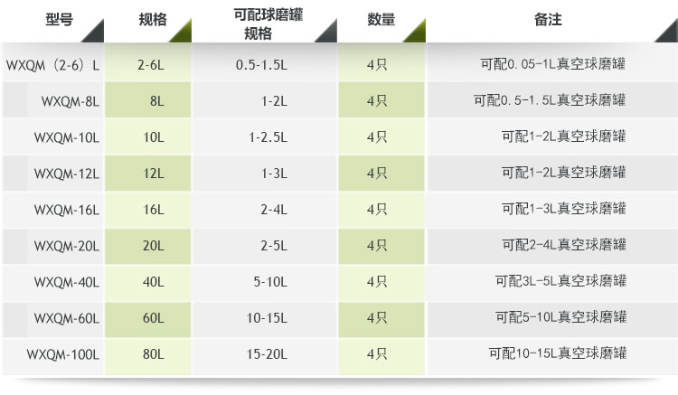 表一:重型臥式行星式球磨機配罐參考